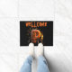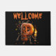 Un halloween drôle de citrouille jack-o-lanterne en forme de la lettre "P" tenant une lampe avec une flamme.