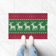 C'est un look de pull tressé - en imprimé! Un motif richement décoré de rennes blancs qui parcourt un champ de verdure entouré d'un rouge de Noël aux motifs blancs.