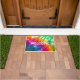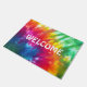 Amour teignez en nouant-vous ? Célébrez les années 60 et les années 70 dans le style avec cet arc-en-ciel teignez en nouant la natte ! La photo d'un réel teignent en nouant le morceau avec le soleil brillant pour rendre les couleurs vibrantes.