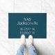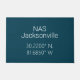 Porte avant avec coordonnées de latitude et longitude pour la US Naval Air Station NAS Jacksonville en Floride Police blanche style Roboto sur arrière - plan bleu marine.