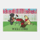 Le BBQ Party Labradors Hollyhock Flowers Dessin de porte pour les fans du Labrador! Trois chiens adorables du Labrador Retriever aiment le barbecue dans le jardin avec les fleurs de Hollyhock.Illustration Labrador Créée par Naomi Ochiai. Vous pouvez personnaliser le texte.