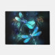 Deux libellules transparentes, lumineuses, turquoise, artistiquement dessinées sur l'arrière - plan de nuit avec des algues luminescentes et des lucioles. libellule éclatante.