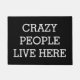 Tapis de porte drôles pour n'importe qui ! "Les personnes folles vivent ici" tapis de porte. Texte blanc/arrière - plan noir. Facile à lire et customiser si vous souhaitez !