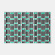 Ce mat de porte a un design moderne du milieu du siècle composé de cinq lignes noires et de deux rectangles turquoise répétés à travers le design.