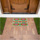 Magnifique design de mat de porte géométrique vert citron au milieu du siècle moderne qui est plein de couleurs et de formes rétro qui comprennent les couleurs rose, turquoise et corail! Commandez aujourd'hui !