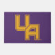 Le logo de l'Université d'Albany est orné d'un design "UA" audacieux et dynamique, rendu dans le violet signature de l'université et tracé avec une frontière dorée frappante. Les lettres angulaires, en bloc, donnent au logo une apparence forte et autoritaire, parfaite pour représenter la fierté et l'identité de l'école. La structure symétrique et géométrique des lettres transporte une esthétique moderne et professionnelle.