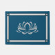 Ce tapis porte une bordure de style art déco et une belle fleur de lotus... en argent sur un arrière - plan bleu foncé.