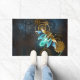 Luciole à vapeur avec ailes bleues transparentes et ampoule verte sur arrière - plan usé, marron, texturé. Style Steampunk.