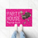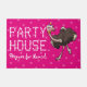 Bienvenue à vos invités de fête (ou de tous les jours) avec ce tapis de portes amusant. Doté d'une autruche escarpée munie d'un boogie, avec un casquette à rayures arc-en-ciel et une souffleuse à pois de polka. Changez le texte par défaut "PARTY HOUSE Prepare for dance!" dans votre message ou légende préféré.