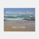 Personnalisé Beach House Ocean Door Mat présente une photo tranquille de vagues bleues et blanches, du ciel bleu et du sable doré de la côte de Melbourne, en Australie. Faites de votre maison une maison et accueillez les visiteurs avec ce tapis de porte rectangulaire apaisant. Le texte est en police blanche moderne, personnalisable pour ajouter votre nom de famille.