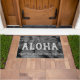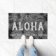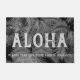 Coloris gris. Le message d'Aloha accueille vos visiteurs dans votre propre paradis tropical. Des palmiers balançants rappellent les plages tropicales d'Hawaii. Ce textile utilise ces feuilles de palmiers, touchés par le vent, dans une combinaison de couleurs tonales. Ce design se décline en plusieurs couleurs. Vous pouvez customiser le message.