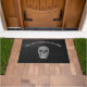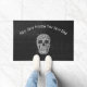 Tête de crâne amusante, tapis de sol de texture gothique grunge. Des cadeaux de gameplay en noir et blanc. "Beaucoup Sont Entrés Peu Ont Mort". Cool, tendance, moderne, effrayant, éffrayant et unique décoration d'Halloween inspiré par la maison. Copyright photo Marg Seregelyi Photography.