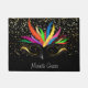 Ce mat de porte est montré avec un arrière - plan de couleur noire avec des étoiles dorées avec une impression de Masque Mardi Gras de carnaval festif. Customisez cet objet ou achetez tel quel. Image stock