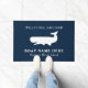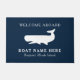 Nautical Navy Blue Whale Welcome Aboard Nom du bateau Doormat.Cet élégant design classique de preppy dispose d'une baleine mystique, parfait pour votre bateau ou la maison de plage. Contactez-moi à truullc@gmail.com.