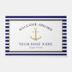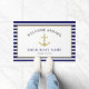 Ce tapis de porte à rayures bleues et blanches avec une bordure dorée et ancre avec les mots "bienvenue à bord de votre nom de bateau". Ce tapis de porte est l'ajout parfait à votre bateau pour accueillir vos amis et ceux qui vous sont chers.