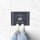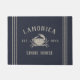 Bienvenue dans votre maison de bord de mer avec ce charmant tapis rustique qui est parfait pour votre maison de bord de mer, maison de plage, ou maison de vacances. Le design personnalisé présente votre nom de famille en lettres neutres, ainsi que votre année d'existence et une illustration de crabe. Les détails de la bande de corde sur un riche arrière - plan bleu marine complètent le design.