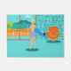 Chaque jour peut être une journée à la plage avec ce Retro Surfer Dude Door Mat. Le style des années 1960, minimaliste design d'art, est doté d'un mec surfeur baisé au soleil, blond et prêt à attraper une vague. Notre surfeur en forme regarde l'océan à travers les portes coulissantes en verre de sa maison en bord de plage. Il se tient dans son salon couleur aqua. Nous pouvons voir un aqua et turquoise, mur en pierre et fauteuil orange moderne du milieu du siècle. De l'autre côté de la porte vitrée, on aperçoit un patio. Au-delà se trouve une plage de sable doré, un palmier balançant, un océan bleu paon étincelant et un ciel d'aqua. Au loin, on peut voir une île volcanique turquoise, qui est dormante pour le moment. Surfer Dude tient une planche de surf bleue et porte des shorts de planche à motifs de tiki bleu. Attrapez quelques vagues et partagez un peu d'amour avec ce design d'été kitsch!