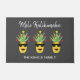 Ce joyeux tapis de Noël Mele Kalikimaka présente des ananas jaunes décorés comme des arbres de Noël et portant des lunettes de soleil ! Facilement personnalisable avec votre nom. Aquarelle originale © Michele Davies.