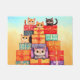 Une énorme pile de cadeaux d'anniversaire colorés gardés par des chats curieux et ludiques.
