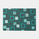 Un motif d'art moderne du milieu du siècle qui a des lignes, des formes dessinées et des carrés dans de belles nuances de turquoise foncé et turquoise.