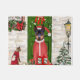 Miniature Pinscher Dog Noël assis à l'extérieur de la maison décorée avec la couronne de Noël, sapin de Noël est une idée cadeau de Noël parfait pour les amoureux de les chiens.
