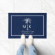 Add your own special touch to this simply elegant design featuring your monogram, family name or phrase and established date in white text and palm tree framed in a white border over a navy blue background.