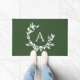 Une couronne de croissant dessinée à la main de feuilles et de lauriers entoure votre monogramme ou initiale. L'illustration florale minimale est parfaite pour une ambiance rustique ou de ferme. Cliquez sur le bouton personnaliser pour modifier la couleur de l'arrière - plan ou ajouter du texte.