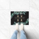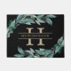 Elégante porte botanique en noir riche caractéristiques votre monogramme initial unique avec votre nom de famille superposé, encadré par des feuilles aquarelles et le feuillage dans des tons riches de vert.