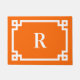 Décor blanc grec Key style géométrique bordure rectangulaire sur un tapis de porte orange vif de 18" x 24" avec un monogramme serif moderne. Customisez ce design en éditant le blanc ou la pêche avec votre choix de couleur préféré. Modifiez le style, la taille ou la couleur de la police selon vos besoins. Associez cette teinte tendance à votre décoration minimaliste de maison. Nous avons également une bordure de clé grecque pour la grande taille de la porte. Envoyez une demande si vous avez besoin d'un autre cadeau avec une zone d'impression unique.