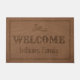 Pour votre maison, ce tapis d'accueil rustique personnalisé présente une texture en cuir imitation marron avec le mot "Bienvenue" et votre nom de famille à personnaliser. De nos coeurs aux vôtres, amusez-vous !