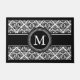 Accueillez votre famille et amis dans le style avec ceci - natte florale de monogramme de motif de damassé blanche noire classique. Si vous avez besoin davantage de personnalisation, cliquez sur svp - customisez-le - boutonnent et utilisent notre outil de conception pour remettre à la côte, tournent, changent des couleurs, ajoutent le texte et plus.