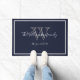 Monogramme Chic Moderne Nom de script Mariage Welcome Doormat. Conception monographique personnalisée blanche et grise avec nom de famille et date de mariée établie sur un arrière - plan bleu marine. Un cadeau cool unique pour les jeunes mariés. Jolie pour leur nouvelle vie ensemble. Cliquez sur personnaliser ce modèle pour le customiser rapidement et facilement. Navires dans le monde entier rapidement. Monogramme Chic Moderne Nom de script Mariage Welcome Doormat. Créé par l'artiste RjFxx *Tous droits réservés. #WelcomeDoormat #Newlyweds #ZazzleMade