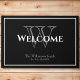 Monogramme moderne Nom de script Mariage chic mat de bienvenue. Le monogramme personnalisé initial et le nom de famille et la date de la mariée et du marié sont établis sur un arrière - plan noir. Cliquez sur Personnaliser ce modèle pour le customiser rapidement et facilement. Un cadeau unique pour les jeunes mariés. Jolie pour leur nouvelle maison ensemble. Navires Mondiaux Rapides. Monogramme moderne Nom de script Mariage chic mat de bienvenue. Créé par l'artiste RjFxx *Tous droits réservés. #PersonalizedFrontDoorMat #NewlywedsGift #ZazzleMade
