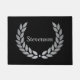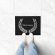 Mat de porte de Monogramme de laurier noir et argent. Ajoutez votre nom à ce tapis de porte personnalisé et impressionnez vos invités.
