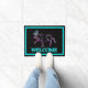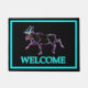 Un rendu lumineux, en forme de néon, d'un orignal, Alces alces, avec le texte "BIENVENUE". Inspiré par les aurores boréales.