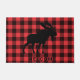 Tapis de porte rouge en plaid noir avec tapis de porte d'accueil en silhouette d'orignal. Pour votre cabine ou chalet.
