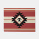 Aztec ethnic bohemian pattern with geometrical shapes in red, orange, grey and black colors on striped background