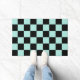Cool frais à damiers design motif, décoration de design d'intérieur moderne pour la maison, salon, chambre de pépinière, chambre pour enfants. à damiers rideaux colorés, tapis, téléphone. à damiers les années 70 et les années 60 tendances design idée. Vérificateurs noirs et bleus
