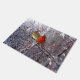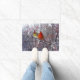 Deux cardinaux intelligents dans une forêt neigeuse.