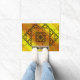 Trois styles des fractales tirées par la main, y compris des triangles de Sierpinski, des garnitures d'Apollonian, et une conception carrée pareillement orientée, composent les couches de ce mandala géométrique, recouvertes sur un gradient jaune et orange lumineux.