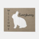 Lapin rayé blanc sur la toile de jute indiquant "Everybunny bienvenu"