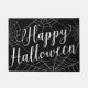 Saluez vos invités de Halloween et dupez ou des treaters avec cette natte de fête ! Comportant un manuscrit moderne "Halloween heureux" entouré par des toiles d'araignée, c'est une grande addition au décor de Halloween de votre maison ! Changez la couleur d'arrière - plan de noir en orange ou n'importe quelle couleur dans l'intervalle en cliquant sur la "personnaliser il !"