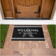 Natte principale grecque élégante d'accueil de frontière de méandre. Faites votre propre tapis de porte d'intérieur/extérieur décoré d'un monogramme fait sur commande avec l'arrière - plan fait sur commande colorer et le texte. Ajoutez votre propre message d'accueil, nom de famille, nom de famille, lettre initiale ou citation drôle. Idée chique de cadeau pour la nouvelle maison/pendaison de crémaillère, le magasin, le magasin, le bureau de société, le modèle chic de typographie des affaires etc. avec la belle frette géométrique. Créez votre propres tapis/couverture personnalisés d'entrée pour l'entrée principale/entrée ou le hall. Décor/décorations à la maison personnalisables pour votre maison. Les idées de luxe uniques de cadeau pour nouvellement les épouse, épousant les couples, les jeunes mariés, le mari et l'épouse etc.