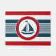 Design nautique avec décoration de voilier en forme ronde sur bleu, rouge et blanc rayé arrière - plan