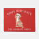 Paillasson de Noël adorable avec un Chien Cavapo portant un chapeau santa sur un arrière - plan rouge festif.