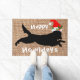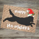 Noël howlidays drôles golden retriever ön a burlap doormat. Un mignon tapis design unique, chien noir portant chapeau santa allongé sur burlap, regardez mignon pour les amoureux de les chiens.