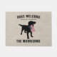 Le paillasson drôle comportant un laboratoire noir tenant un drapeau américain et le texte qui lit des "chiens accueillent, des humains tolérés". Ajoutez votre texte nommé ou fait sur commande pour personnaliser. Perfectionnez pour des amoureux de les chiens !