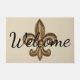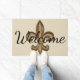 Joli accueil dans la natte de manuscrit avec un grand symbole de gold fleur de lis.