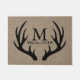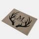 Natte orientée minable de cerfs communs chics et parfaits pour une famille outdoorsy/chasse ! Les silhouettes noires croquantes d'andouillers de cerfs communs entourent votre lettre personnalisée de monogramme de famille et nom et prénoms sur une texture de toile de jute de faux ! Cette natte ferait également un grand cadeau pour nouvellement l'épouse ou de nouveaux propriétaires !