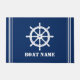 Nom de bateau personnalisé avec Nautical Classic Ships Roue Helm Marine Blue Custom Entryway Doormat.